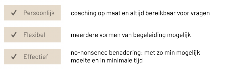 Ik pas mij graag aan aan wat voor jou werkt en zo stippelen wij samen een plan uit.